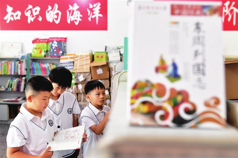 8月25日,山东省青岛市城阳区夏庄小学学生在选购学习辅助书籍。