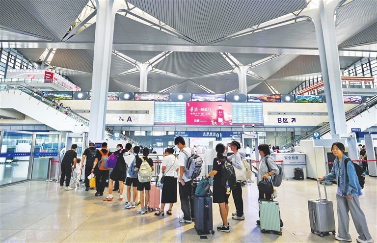 8月31日,太原南站内旅客熙熙攘攘。当日,为期62天的2025年暑运结束。暑运期间,太原南站日均发送旅客8万人次,同比增长5%。牛利敏 张澍宏 摄影报道
