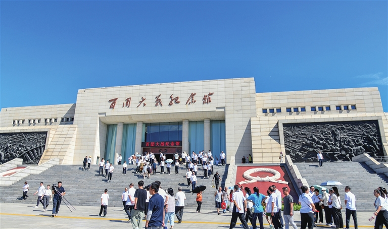 狮脑山上,百团大战纪念碑如利剑指天,两侧烽火台巍然对峙,砖石“长城”蜿蜒起伏。它铭记的不仅是一场战役,更是一个民族的不屈脊梁。主战场之一的狮脑山,曾响彻八路军破袭交通、攻坚据点的号角,也曾映照无数坚毅的面庞。百团大战纪念馆中,470余幅图片、200余件实物、10余处场景,将“运筹帷幄”“百团出击”“乘胜追击”等七大部分娓娓道来。声光电交织间,历史不再是遥不可及的往事,而是可触可感的民族记忆。