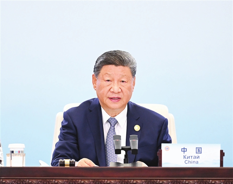 习近平指出,从黄浦江畔到海河之滨,上海合作组织走过不平凡发展历程。上海合作组织成立24年来,成员国秉持互信、互利、平等、协商、尊重多样文明、谋求共同发展的“上海精神”,共享机遇、共谋发展,取得一系列开创性成果、历史性成就,树立了新型国际关系的典范。上海合作组织率先建立边境地区军事领域信任机制,最早采取打击“三股势力”多边行动,维护了地区和平安宁;率先启动共建“一带一路”合作,使地区发展繁荣动力更加充足,立体互联互通网络更加完善;率先缔结长期睦邻友好合作条约,宣告世代友好、永不为敌,促进了各成员国人民相亲、民心相通;率先提出共商共建共享的全球治理观,践行真正的多边主义,为促进世界和平与发展发挥了积极作用。