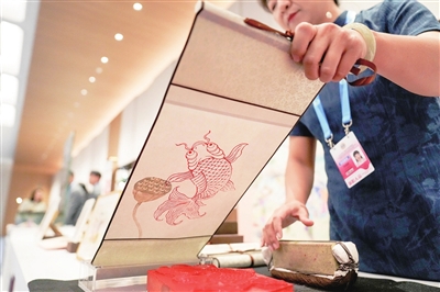 为泥人脸谱点睛、体验杨柳青木版年画拓印、尝试拆解鲁班锁……8月31日晚欢迎宴会前,蕴含天津特色的非物质文化遗产展示,引起国际贵宾浓厚兴趣。