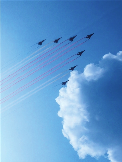 《松花江上》《黄河大合唱》等悲壮歌声响起,瞬间将我带回国难深重、全民抗战的烽火岁月;80门礼炮响彻神州长空,我的心灵也随之一震。阅兵式上,受阅将士一声声“为人民服务”的呐喊,喊出了新时代军队气壮山河的英雄气概。分列式中,陆海空、火箭军、军事航天、网络空间、信息支援等部队依次亮相,战斗雄姿与大国重器尽显——“三位一体”的东风洲际导弹系列、最先进的东风—61导弹,以及新型火箭炮,无人机、无人艇等无人装备首次登场,直观展现出全面推进中国式现代化进程中,我国强大的国力与军威。
