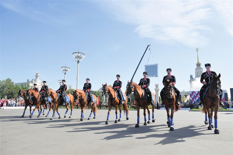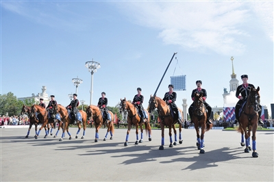 9月13日,骑手在俄罗斯莫斯科的国民经济成就展览馆参加纪念活动。