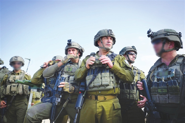 这是9月16日在加沙地带拍摄的以军总参谋长埃亚勒·扎米尔(中)。新华社发 (以色列国防军供图)