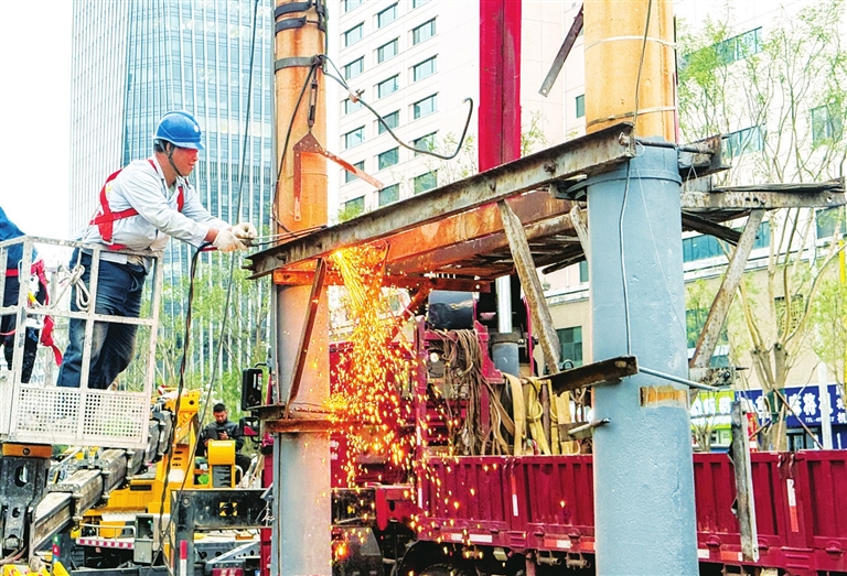 自九月十六日起,新建路改造工程正式启动架空线缆入地作业,实现所有线缆地下敷设。九月十九日,施工人员拆除道路两侧电线杆及空中线缆设施。牛利敏 摄