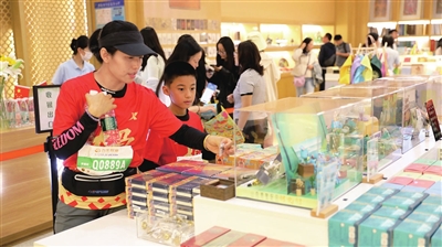 9月21日,参加2025太原马拉松赛的选手在山西博物院文创区选购心仪的文创产品。我市通过举办马拉松赛等体育赛事,点燃了城市热情,以“体育+”为纽带,串联起文化、旅游、商贸等多元业态,让“跟着赛事去旅行”成为新时尚。