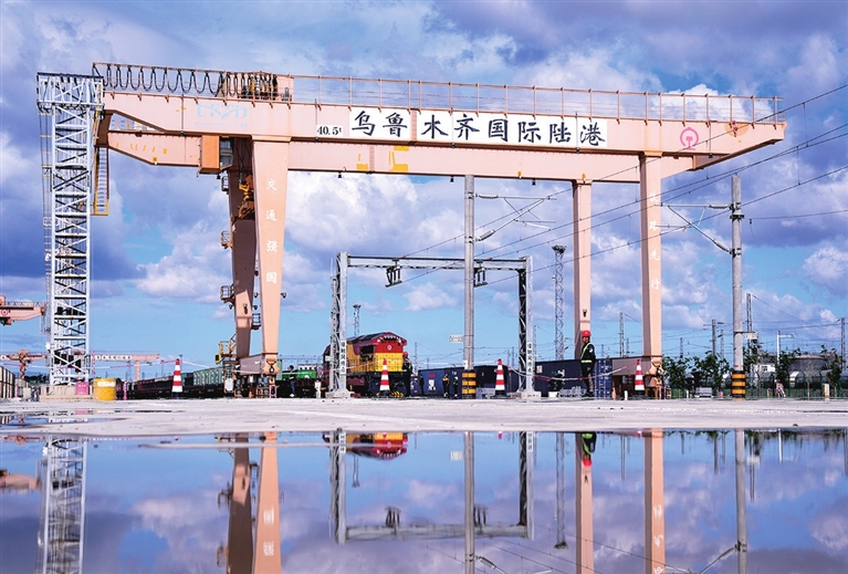 龙门吊移动抓取、火车汽笛声阵阵响起……乌鲁木齐国际陆港区,一列列中欧班列满载“中国制造”,即将飞驰向西。