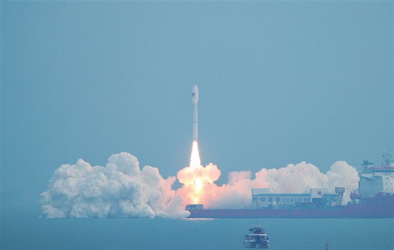 9月24日15时56分,我国太原卫星发射中心在山东日照附近海域使用捷龙三号运载火箭,成功将吉利星座06组卫星发射升空,卫星顺利进入预定轨道,发射任务获得圆满成功。新华社发(安 迪 摄)