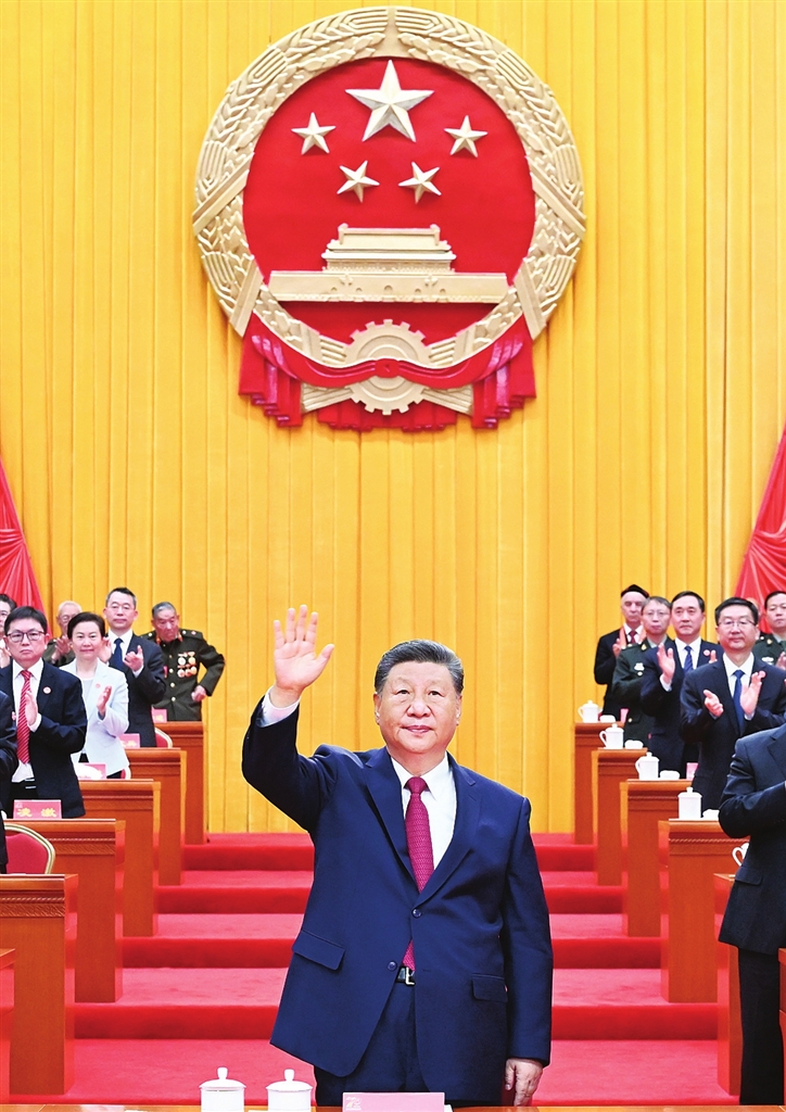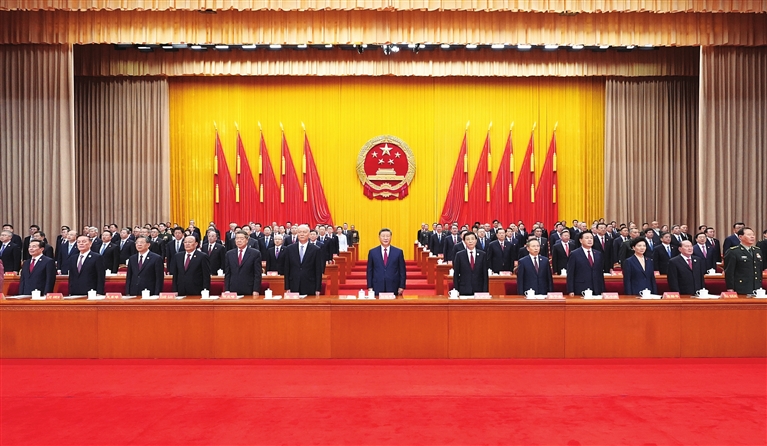 上午10时30分许,在欢快的乐曲声中,习近平等领导同志走上主席台,全场响起长时间的热烈掌声。