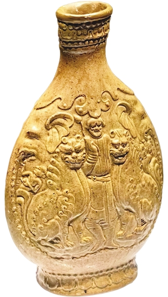 黄釉模印胡人双狮纹扁壶,不仅是一件精美的陶瓷,更是北齐时期社会、文化、艺术等方面的一个缩影。它展现了当时制瓷工艺的卓越成就,见证了南北朝时期民族融合与文化交流的盛景,为我们研究北齐乃至整个南北朝时期的历史与文化,提供了极为珍贵的实物资料。
