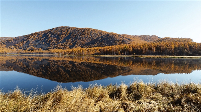 9月29日拍摄的内蒙古阿尔山国家森林公园乌苏浪子湖景色(无人机照片)。金秋时节,内蒙古阿尔山国家森林公园色彩斑斓,景色如画。新华社记者 贝 赫