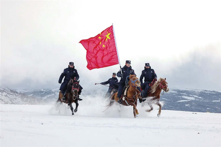 国庆中秋假期,各行各业的劳动者坚守在工作一线,在平凡的岗位上尽责奉献。这是10月2日,新疆阿勒泰边境管理支队喀纳斯边境派出所巡护队对山口要道进行巡逻踏查。新华社发