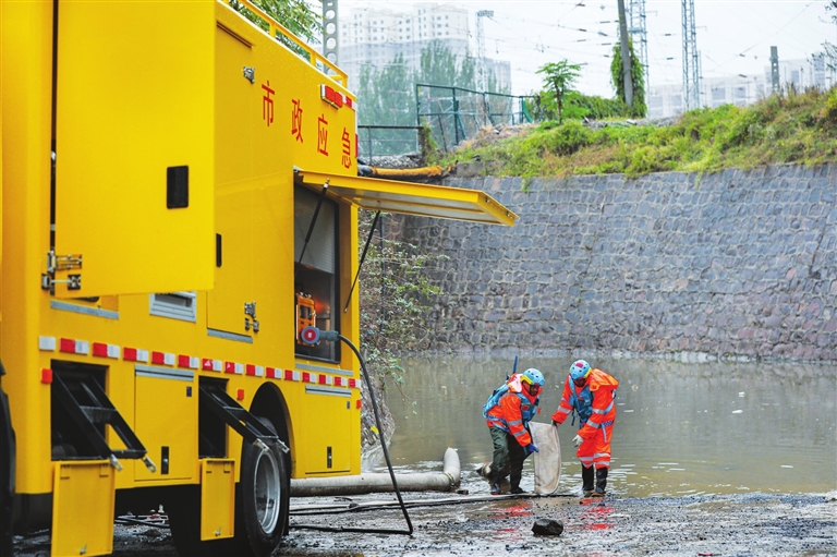 我市发布暴雨蓝色预警后,市城市排水管理中心立即启动应急预案,各大污水处理厂、泵站所、池渠所领导班子全员在岗,实时调度指挥防汛工作,对防汛人员、物资、设备统一调配,确保防汛措施落实到位。包括晋阳街雨水泵站在内,泵站运行所管理着全市89座泵站。降雨到来后,泵站运行所工作人员冒雨观察汇水、进水量,根据水情,适时启动水泵抽排,轮番清渣、捞取大块渣物,确保进水通畅。同时,该所20台临时备用泵、3台发电车、5台应急抢险车辆等防汛物资设备全部到达指定位置,积极应对突发情况。