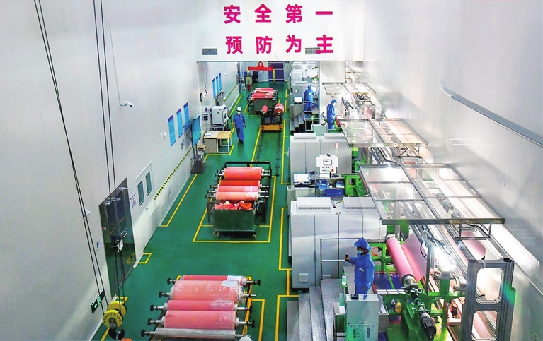 10月12日,惠科新材料有限公司车间内,工人正在加紧生产。该企业投产一年多来产能不断提升,为市场提供多种产品。赵世凯 摄