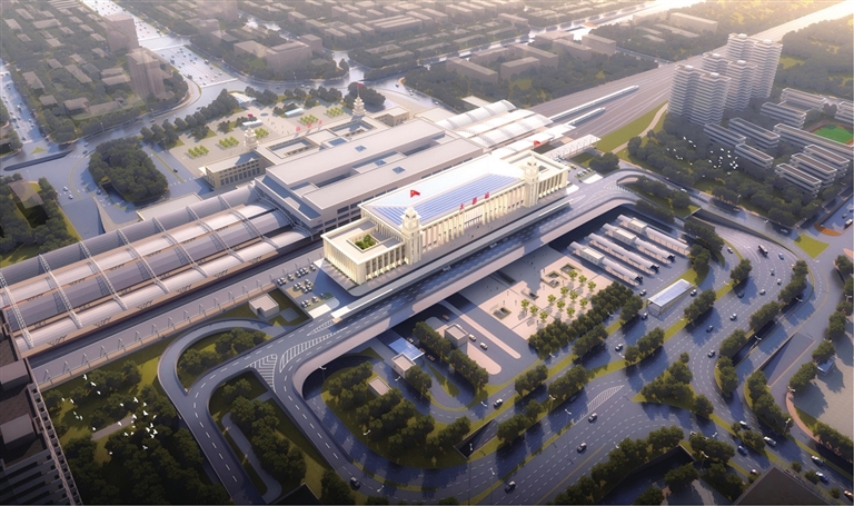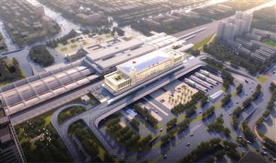 据悉,新建东站房建筑面积约3.48万平方米,主要包括现代化的站房主体、配套换热站及站台雨棚三大部分。其中,面积逾2.8万平方米的站房主体高29.5米,由地上四层(含夹层)、地下二层两部分组成,在充分提取既有站房风格的基础上,融入钢结构和玻璃幕墙等现代建筑艺术风格,构建新老站房格调协调、站城融合的城市新地标。