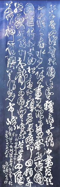 《五峰山草书碑》在书法艺术的表现上更是别具一格,他不仅融入道家符号,更表现了强烈的个性和反传统。他改造草书简省的特征,适当繁化相关字体,甚至主笔虚笔连带不分,一笔数字连绵不断,形成自己的独特书风。通篇气势连贯,字法奇崛,结体奇特,构成一种奇险狂放、磅礴夺人的开合效果。