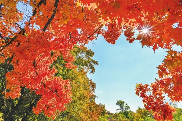 这是10月18日拍摄的乌旦塔拉五角枫森林公园美景。