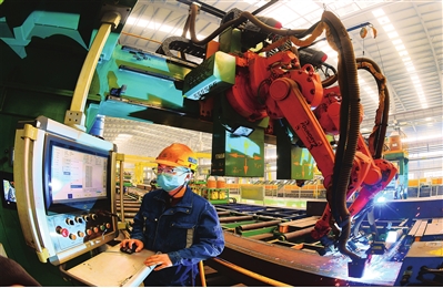 10月20日,山西转型综改示范区山西钢构科工有限公司生产车间内,工人们开足马力赶订单。为保障太原武宿国际机场三期改扩建工程、山西超晟光电科技、大同市黄花产业园大庆路跨铁路桥、山东济南会展中心等项目建设进度,该公司提前制订了生产计划,严格把控生产进度和产品供给,确保各重点项目有序推进。王韵菲 摄