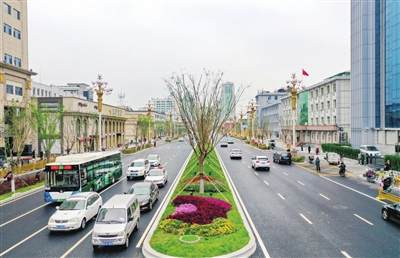 漫步于秋日的新建路,道路两旁花木扶疏,熙攘的人流车流与井然的街景交织成一幅动静结合的秋日胜景图。虽然已近深秋,但路旁和路中傲然绽放的球菊与超级凤仙,还是让人在层层叠染中感知秋天的那一抹亮色。