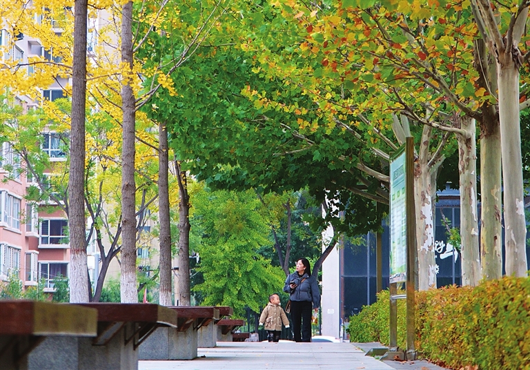 10月23日,秋日的和平公园景色如画,市民漫步其间。王韵菲 摄