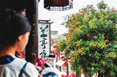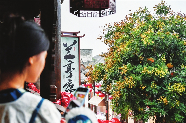10月22日,身着古装的游客在拍摄忻州古城街景。本组稿件由 新华社记者 曹 阳 摄