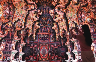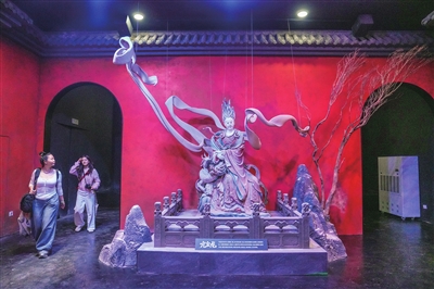 步入展厅,明场与暗场交替间,皮影八戒悠然现身。它不再是游戏里的虚拟角色,而是穿梭于山西古建之旅的智慧引路人。暗场中,手电筒点亮朝元图的刹那,壁画上的神仙衣袂翩跹;数字万花筒里,小西天的悬塑绽放出前所未有的绚烂。这不是简单的场景复刻,而是用数字语法重新诠释东方建筑美学的深层密码。