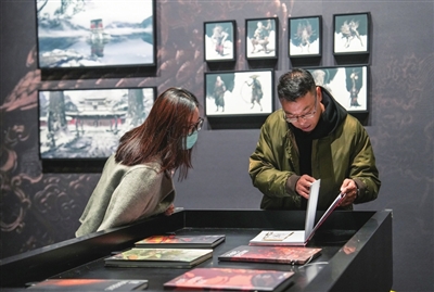 “返本还原”单元,每一位“天命人”靠近它们,凝望它们,不仅是欣赏恢宏创意与复杂工程,更是从幻想回归本源的探索,从技艺窥见精神的溯源。“晋筑探秘”单元,悬空寺在光影中展现其倚山而立的惊世奇构;应县木塔的榫卯解构则让人窥见古人“观形、观构、观心”的营造智慧。“古建寻迹”单元,十五座古建在曲面连屏中依次铺展,朝代更迭与建筑演变同步呈现。裸眼3D技术将梁架结构层层剥离,木雕原型、展板与数字屏互动相映成趣,连孩童都能在友好视觉高度里读懂古建精髓。“再见上下”单元,4米多高的三联屏前,游客与经典BOSS展开虚实交错的对决。“有情有欲”单元,精致的手稿揭开艺术的创作秘辛。