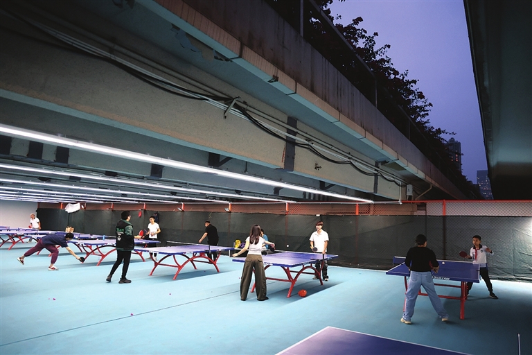 11月3日,市民在位于广州市二沙岛的广州大桥桥底乒乓球场打球。