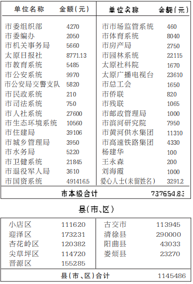 2025年“中华慈善日”送温暖献爱心活动10月份捐款公示