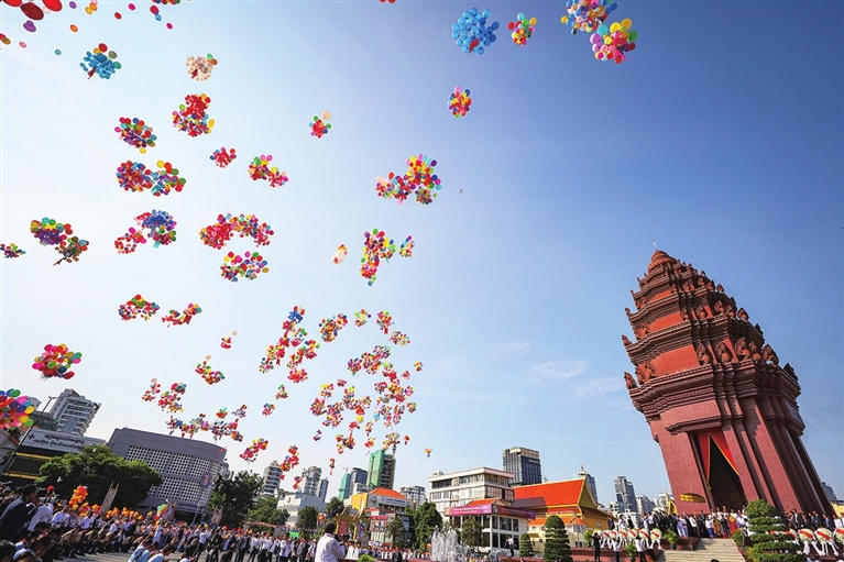 柬埔寨11月9日在首都金边举行活动庆祝国家独立72周年。新华社发