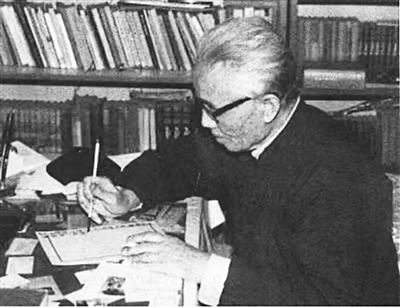 我把春莲校友发来的两幅图片发给谢泳,他立即回复说:两幅都不是常风先生,前面一幅是顾颉刚,另外一幅不清楚(随后查明是钱锺书)。我的脑子里在飞速搜索着,想到在多篇文章和资料中,看到一幅常先生端坐桌旁,手执毛笔正在写信的照片,手机里保存着。匆匆找出、下载。又想到前不久加了微信的常先生女儿常立老师,因未曾谋面不熟悉,但这次一定要请她确认了。我把图片先发给谢泳求证,又发给常立并直接拨通电话。谢马上回复:“这个没有问题。”常老师电话中说:“刚才发的正是家父。”一幅照片两人确证。我立即又给丁老师发常先生的工作照,打电话进行了最后的确定。照片调换后报纸即可立刻开印。此时的时间是8时50分。遗憾的是,这幅照片虽然形象很好,但黑白照,不清晰,背景有点乱,整个画面模糊、斑驳,特别是脸上像长了麻子。用修图软件也没办法处理。而那幅百度百科上“张冠李戴”的常先生,至今没有弄清是哪位老先生。