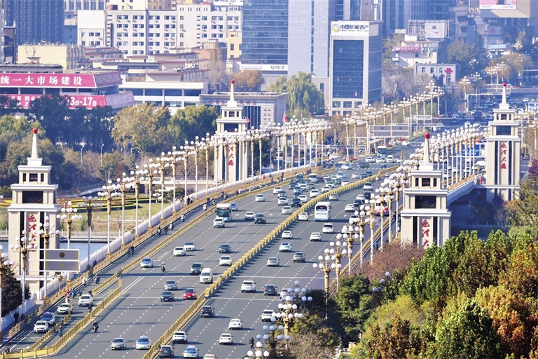 11月13日,阳光明媚的好天气让人倍感舒适,眺望迎泽大桥,城市美景尽收眼底。邓寅明 摄