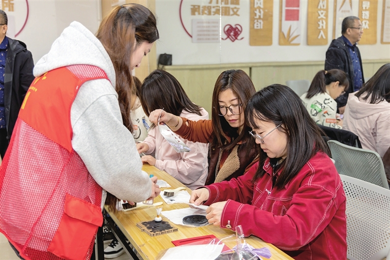 11月13日,太山博物馆志愿者走进晋祠社区,通过文化讲述、特色非遗拓印体验以及传统手作香包等形式,把博物馆文化带到居民家门口。王韵菲 常宇翔 摄影报道