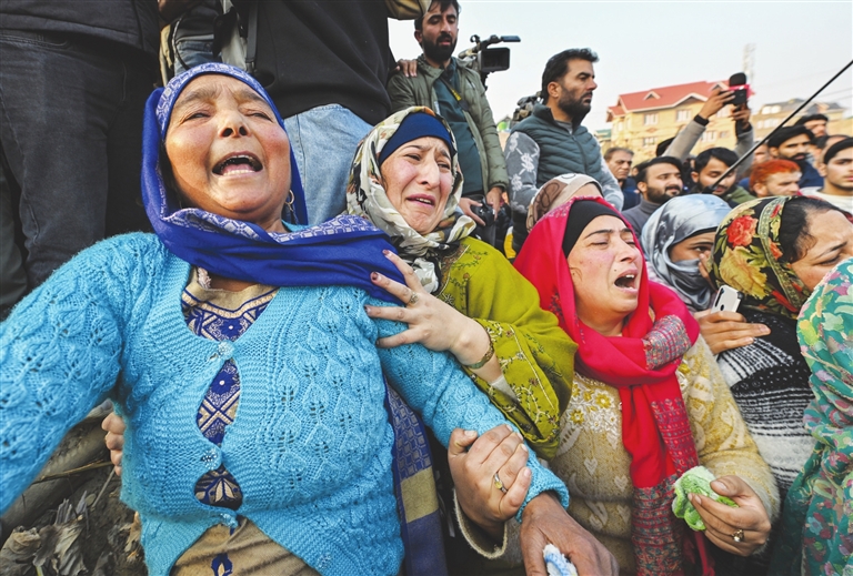 11月15日,在印控克什米尔地区斯利那加,人们哀悼爆炸事件中的遇难者。据印度媒体报道,印控克什米尔地区一警察局14日晚发生爆炸,造成至少9人死亡、29人受伤。新华社发
