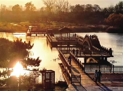 11月15日傍晚,夕阳把汾河景区四期段的河面揉成一河碎金。琥珀色霞光漫过水面,与粼粼波光交相辉映,游人穿行在木桥上,沉醉在诗意美景之中。梁 琛 邓寅明 摄影报道