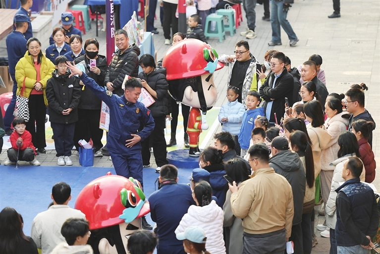 11月15日,省城钟楼街“消防科普小镇”内人头攒动,市民在互动体验中学习消防知识。“小镇”自本月9日开放以来,迅速成为该街区热门打卡地。邓寅明 摄