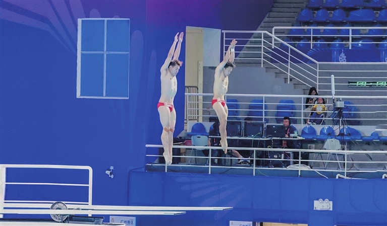 ⑤老将李政(右)与队友参加跳水男子双人3米板比赛