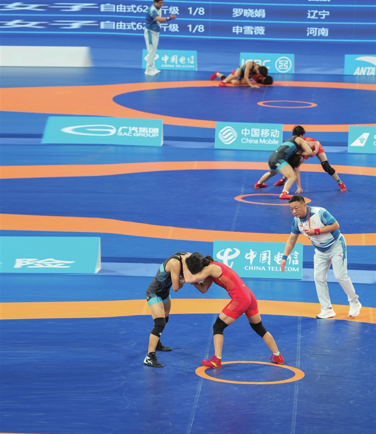 ⑧山西选手在自由式摔跤比赛中