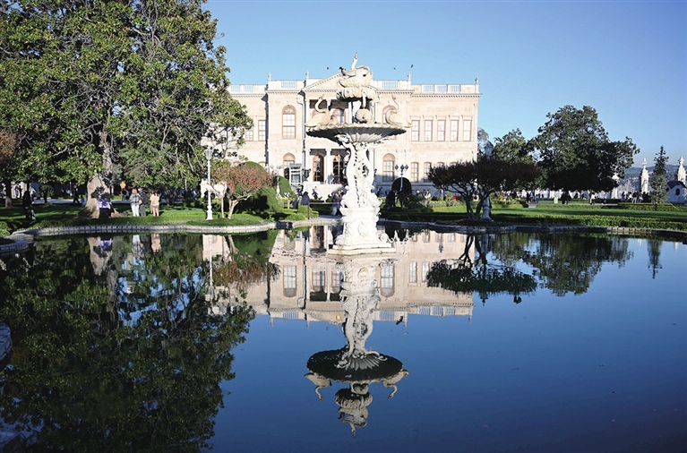 多尔玛巴赫切宫位于土耳其伊斯坦布尔博斯普鲁斯海峡岸边,建于19世纪中叶。该宫殿既保持了奥斯曼时代的特点,也吸收了欧洲建筑的风格。除285个房间外,还有8个大厅,内部装饰非常华丽。新华社记者 刘 磊 摄