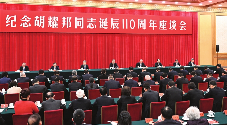 习近平强调,胡耀邦同志志存高远,在为共产主义不懈奋斗的长期实践中表现出坚韧不拔的革命意志。全党同志要像他那样坚定理想信念、对党忠贞不渝,积极投身中国式现代化建设,为实现远大理想和共同理想奋力拼搏。
