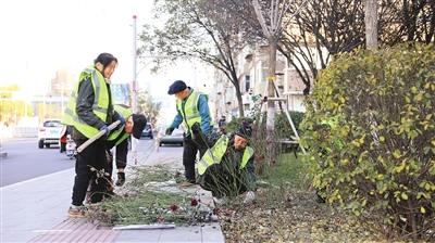 11月20日,太原市园林绿化建设服务中心工作人员对胜利街新栽的月季进行修剪作业。为了降低冻害风险,保护月季根系,该中心将实施科学修剪、浇封冻水、分层防寒等措施,为次年萌芽、开花奠定基础。郭苑甫 摄