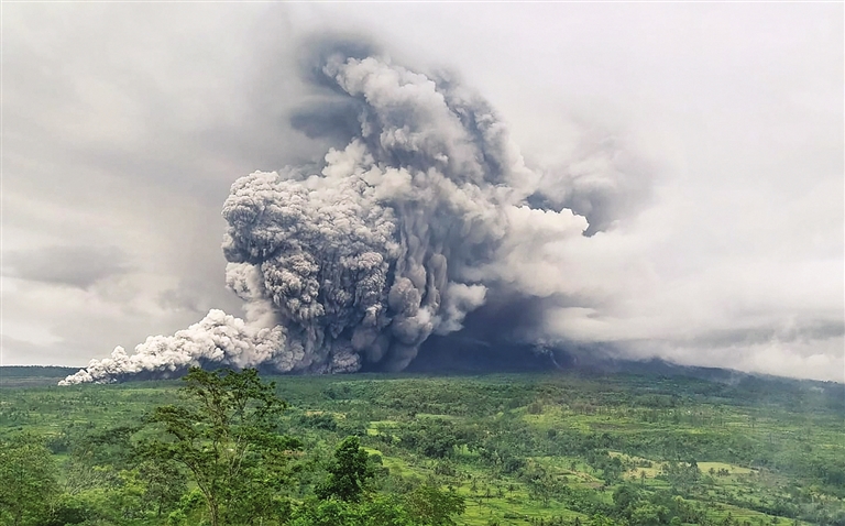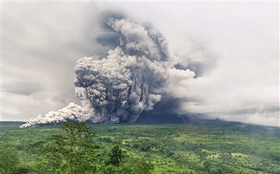 印尼地质局19日说,位于该国东爪哇省的塞梅鲁火山当天喷发,火山警戒级别已被提升至最高级。新华社发