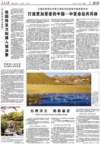 此行切身感到,三国政局保持稳定,相继进入经济快速发展、工业化起步加速的新时期,到处呈现生机勃勃的景象。作为三国的友好邻邦,我们为此感到高兴。明年是中国“十五五”规划开局之年,中方将以此为契机,同中亚各国扩大合作领域、丰富合作内容、提升合作质效、释放合作潜能,做奔向现代化道路上的同行者,开辟中国中亚合作高质量发展新境界,打造更加紧密的中国—中亚命运共同体。