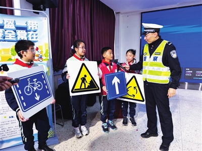 活动现场,交警宣讲员结合小学生认知特点,贴近生活的案例,围绕“一盔一带”“交通标志识别”“乘车人注意事项”“视线盲区”等内容展开讲解。通过展示交通标志图卡、现场提问、互动抢答等方式,让抽象的交通规则变得直观易懂。活动最后还发放了交通安全绘本手册宣传资料,鼓励学生将学到的交通安全知识分享给家人,提醒家长要遵守交通规则,特别是规范停车、“一盔一带”等文明交通行为,带动家庭共同重视交通安全。