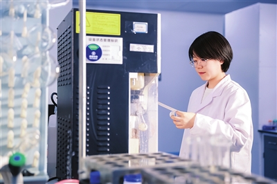 锦波生物以持续高强度的研发投入,深耕“人源化胶原蛋白”,建成了全球规模最大的产业化基地,实现了从科学探索到商业成功的跨越。11月26日,锦波生物功能蛋白研究院内,工作人员在查看刚刚实体化落地的编织胶原相关实验数据。王韵菲 摄