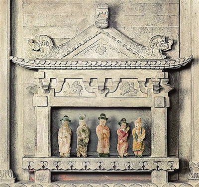 山西地上、地下都发现有大量珍贵的戏曲文物。这些文物不仅数量多、品种多,而且历史久远,时代序列清晰、完整。山西现存的大量戏曲文物中,有两类文物最引人注目:一类是在宋金元时期的古墓葬中出土的大批戏曲砖雕和戏俑;另一类是遍布全省的大量古戏台。据统计,全省现存明清戏台有两千多座,几乎是村村有戏台,有些村甚至有三四座戏台。晋南洪洞县广胜寺明应王殿里,有一幅元代戏剧壁画,上面写着:“尧都见爱,大行散乐忠都秀在此作场。”这是一幅十分珍贵的戏曲壁画,画于元泰定元年(1324),是研究元杂剧的重要实物依据。
