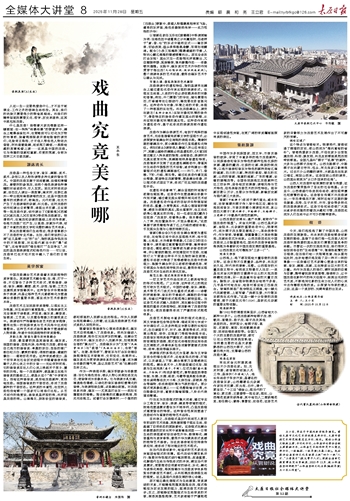 今天,我们浅浅地了解了中国戏曲、山西戏曲的发展脉络。而未来的戏曲有哪些创新发展的路径,是接下去我们每一位戏曲人和对戏曲怀揣热爱的观众朋友们需要反复思考的命题。尽管这一次的交流结束后,我们很快又会回到各自的“生活琐屑”中,继续拾起繁忙的日程表,但当我们有一天抽离思绪、抬头望向远处时,也许有意识地发现了另一种不一样的景象——这些通过艺术家精心塑造出来的绘画、音乐、舞蹈、戏剧,正在释放出巨大的艺术力量。而作为戏曲人的我们,满怀民族的自尊与自豪,携带着民族审美理想,接续努力,让中国戏曲在新时代的伟大征程中,映照出无穷的艺术美,不断地用它新的生命力在人们的心灵中去传播那无限的美。从探索与传承的意义上说,这是一个美好的、充满希望的出发点。