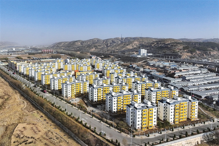 初冬的吕梁山,寒风凛冽。山西省吕梁市临县湫水柏林苑易地扶贫搬迁安置点内,孩子们有说有笑赶去上学,老人们在小区广场跳舞健身,扶贫车间里人们辛勤劳作,一派热闹景象。