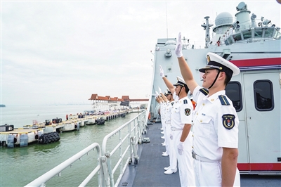 11月29日,在马来西亚巴生港,学员在甲板分区列队,向欢迎人群挥手致意。新华社发(于 涛 摄)