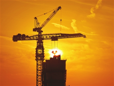 日出时分拍摄的张靖皋长江大桥南航道桥南主塔施工现场(11月30日摄,无人机照片)。